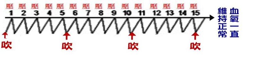 10. 壓胸/吹氣比率30:2也絕對是錯誤!因全世界每顆心臟都是連續收縮!全世界沒有1顆心臟是連續跳30下,然後忽然停止,等待連吸2口氣6秒鐘再跳30下!這完全不符合人類呼吸及循環節奏,這是非常簡單的常識判斷問題。