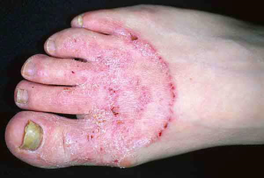 1.趾間型:病患趾縫(尤其是第四趾間)可見到皮膚濕潤、糜爛、脫屑及裂開。